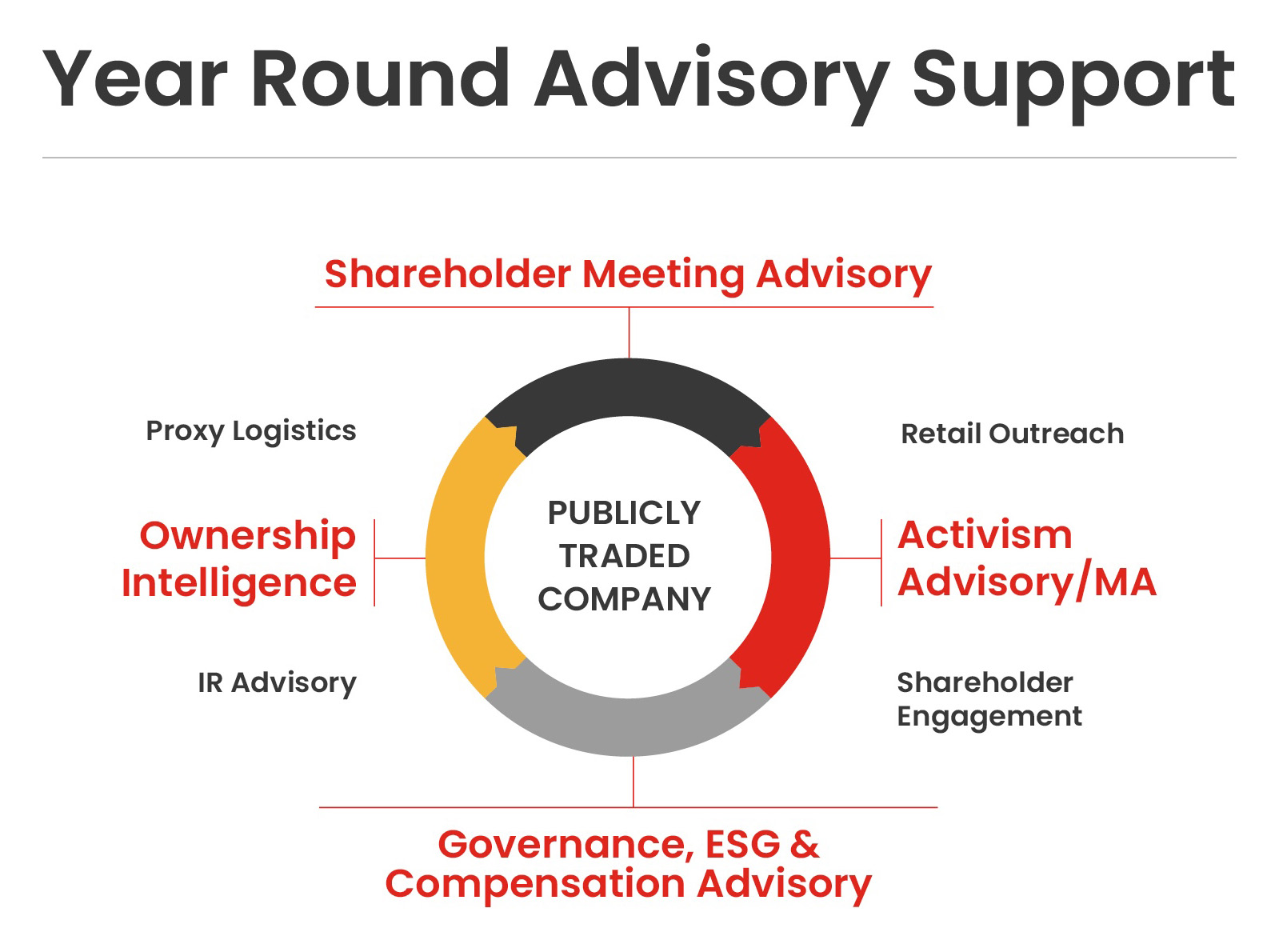 Through our Shareholder Engagement – INSIGHT™ program, Alliance Advisors helps public companies conduct shareholder outreach throughout the year. Our program helps executives and their boards understand and consider the issues of importance to shareholders and enables companies to address them appropriately.